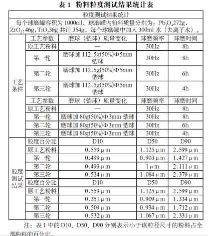 各種原料經(jīng)過粉料均勻磨細后,新的粉料粒徑小于舊的原料粒徑。在后續(xù)的燒結工藝中,粒徑較細的粉料容易燒結成晶向致密的塊體,可燒成的溫度范圍也大,燒成陶瓷后單位體積密度會理想。d33、電容、損耗、介電常數(shù)等壓電陶瓷性能測試結果會加穩(wěn)定。