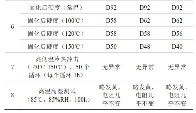 2)球磨35h制得的片狀銀粉制得的導(dǎo)電銀膠,銀膠的粘度、觸變指數(shù)、推力測(cè)試、導(dǎo)電性能、點(diǎn)膠、固化后硬度測(cè)試、高低溫冷熱沖擊測(cè)試及高溫高濕測(cè)試均滿足應(yīng)用。